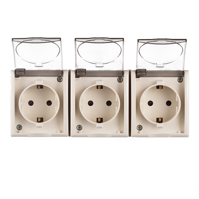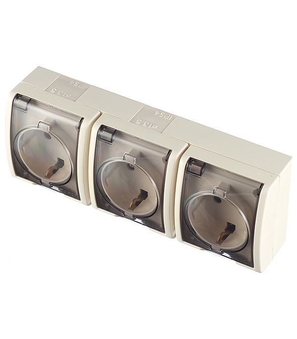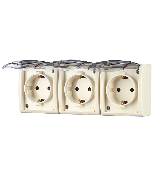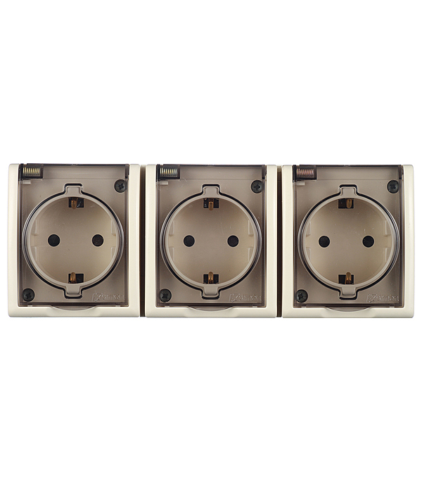 Розетка тройная с заземлением Schuko со шторками с крышкой IP54 16А 250В S15 Aqua слоновая кост