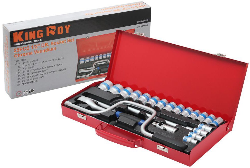 - Наличие в наборе Удлинители 1/2", Трещотка 1/2", Торцевые головки 1/2"