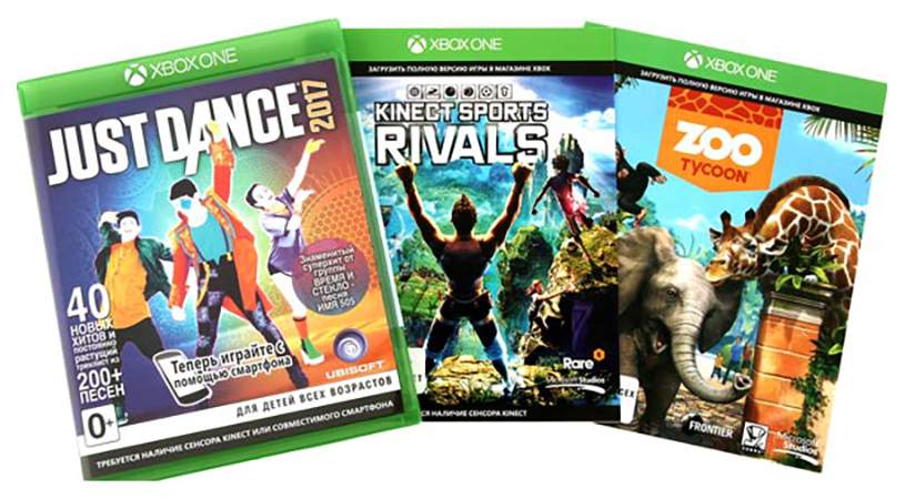 - Игры в комплекте Kinect Sport Rivals; Zoo Tycoon; Just Dance 2017
