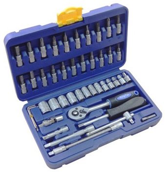 - Наличие в наборе Удлинители 1/4", Трещотка 1/4", Торцевые головки 1/4", Отвертка под биты, Комбинированные ключи