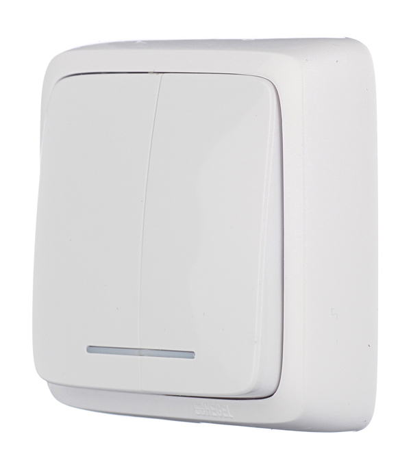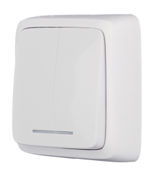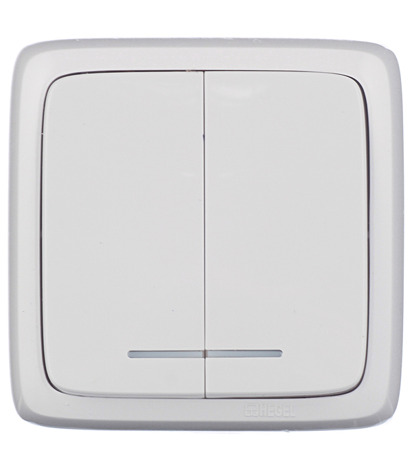 Выключатель двухклавишный HEGEL Alfa о/у с индикацией белый