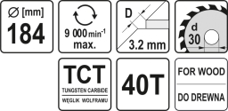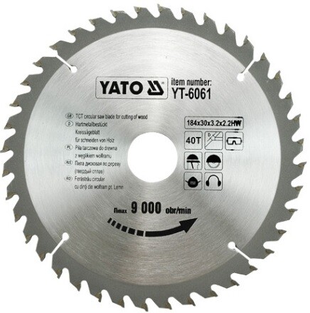 Технические характеристики YATO по дереву 184х30х3.2х2.2 мм, 40 зубцов (YT-6061)