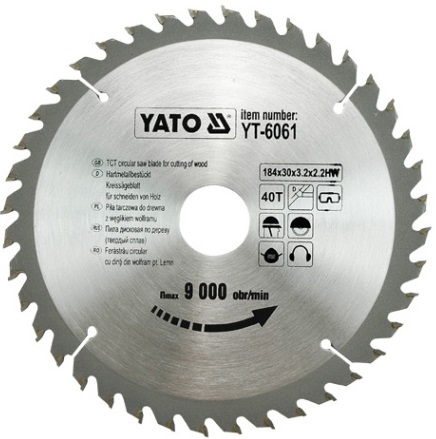 Диск пильный YATO по дереву 184х30х3.2х2.2 мм, 40 зубцов (YT-6061)