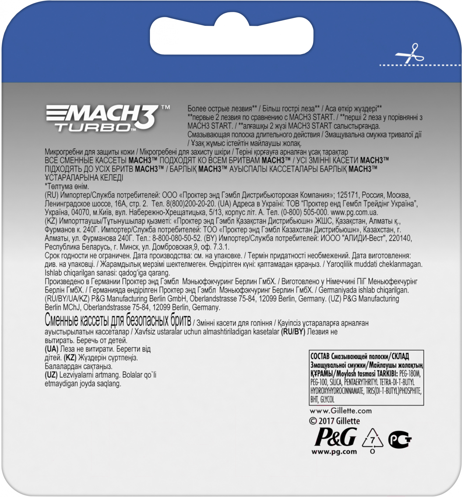 Сменные кассеты Gillette Mach3 Turbo (2шт); Для кого: для мужчин; Количество: 2