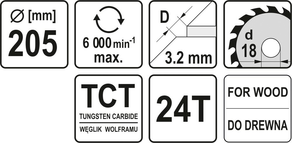 Технические характеристики YATO по дереву 205х18х3.2x2.0 мм, 24 зубца (YT-6066)