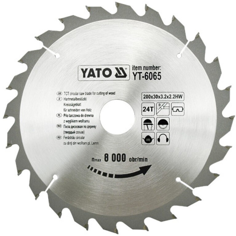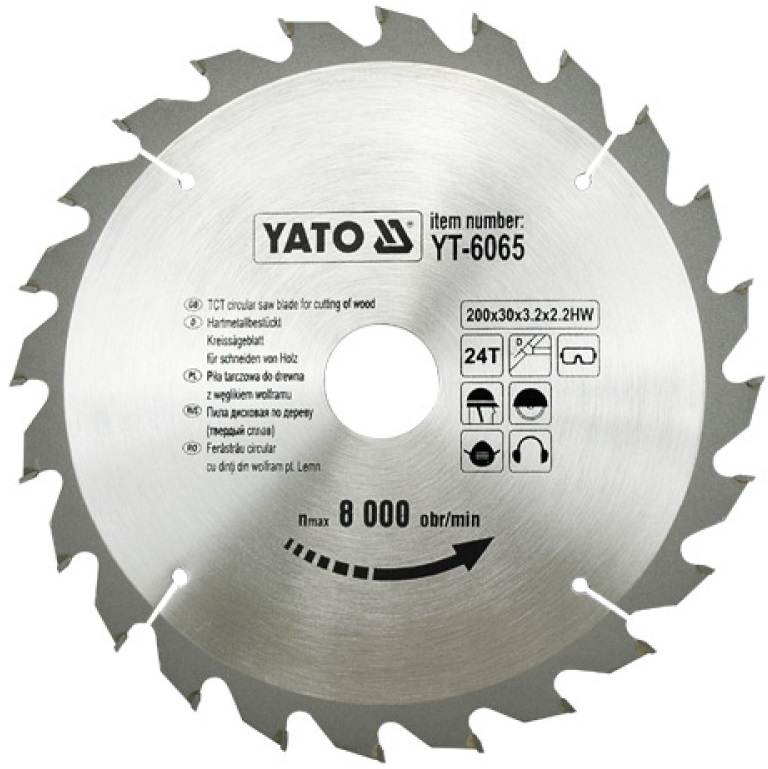 Диск пильный YATO по дереву 205х18х3.2x2.0 мм, 24 зубца (YT-6066)