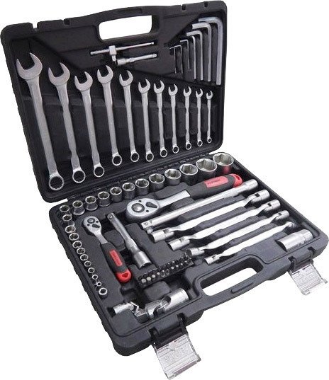 - Наличие в наборе Шестигранные ключи, Удлинители 1/4", Удлинители 1/2", Трещотка 1/4", Трещотка 1/2", Торцевые головки 1/4", Торцевые головки 1/2", Отвертка под биты, Комбинированные ключи, Головки свечные, Биты