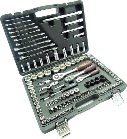 - Наличие в наборе Удлинители 3/8", Удлинители 1/4", Удлинители 1/2", Трещотка 3/8", Трещотка 1/4", Трещотка 1/2", Торцевые головки 3/8", Торцевые головки 1/4", Торцевые головки 1/2", Отвертка под биты, Комбинированные ключи, Биты