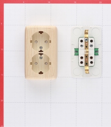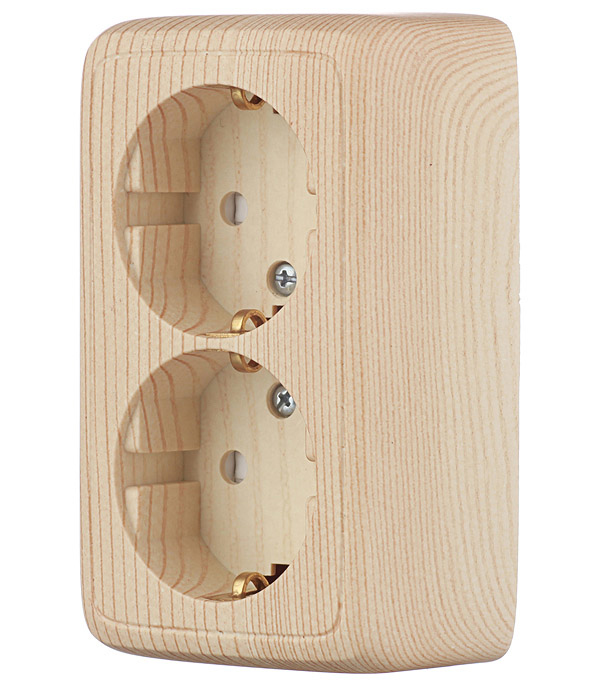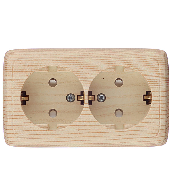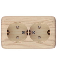 Розетка двухместная HEGEL Alfa о/у с заземлением и защитными шторками сосна