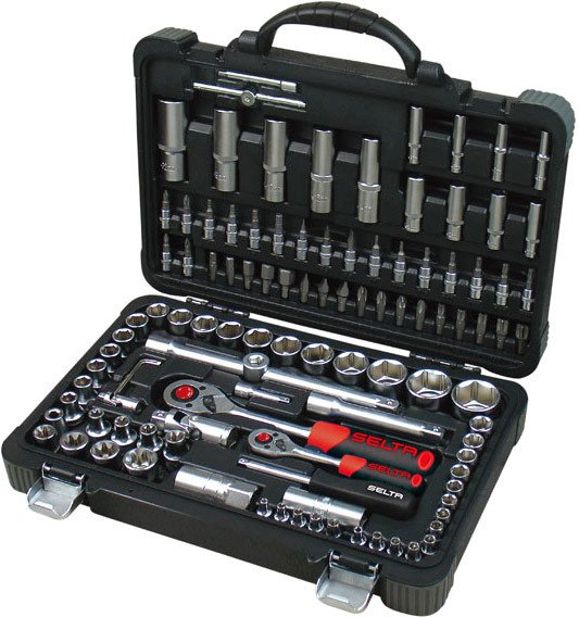 - Наличие в наборе Шестигранные ключи, Удлинители 1/4", Удлинители 1/2", Трещотка 1/4", Трещотка 1/2", Торцевые головки 1/4", Торцевые головки 1/2", Головки свечные, Биты
