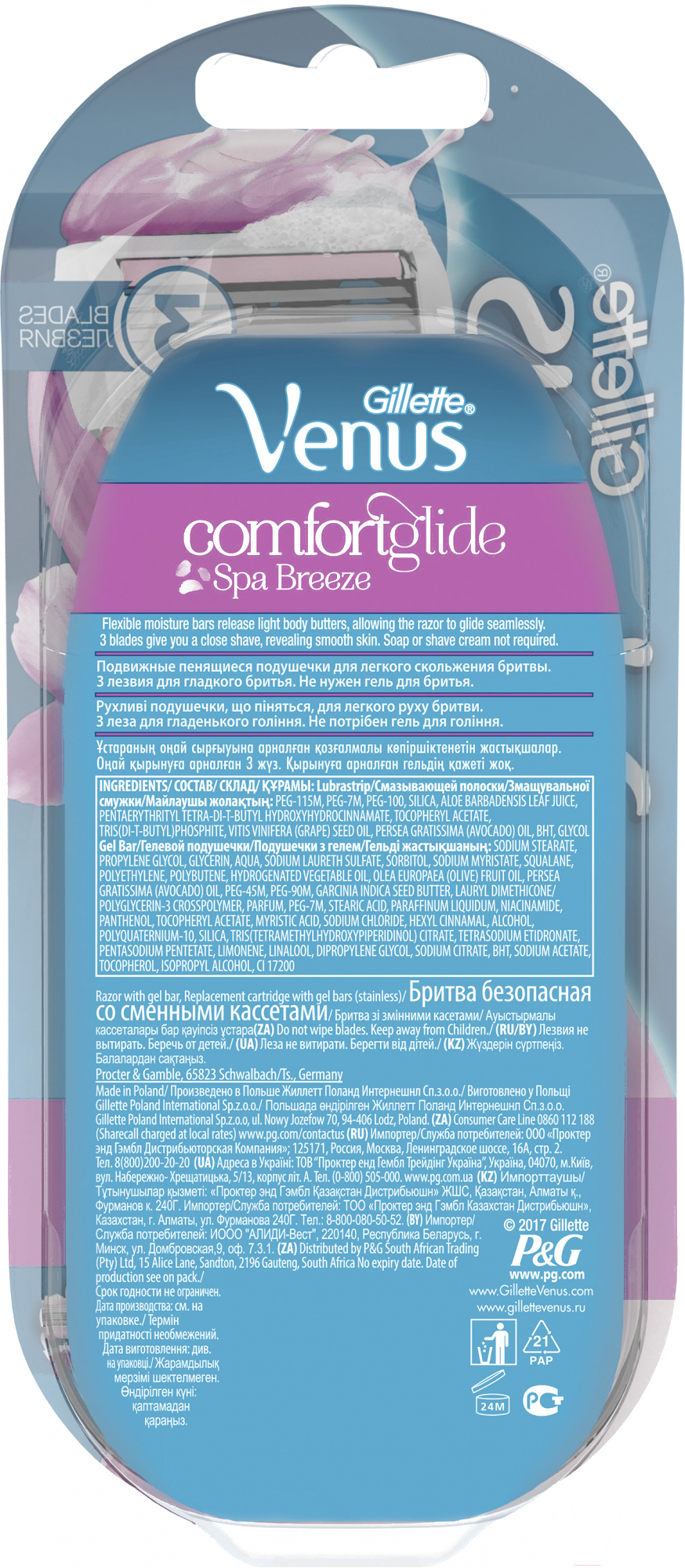 Бритвенный станок Gillette Venus Spa Breeze (+ 2 кассеты с гелем);