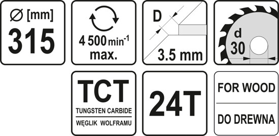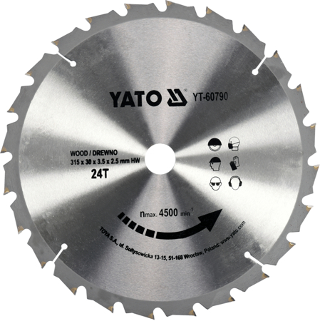Технические характеристики YATO по дереву 315х30х3.5х2.5 мм, 24 зубца (YT-60790)