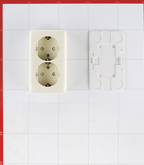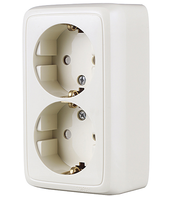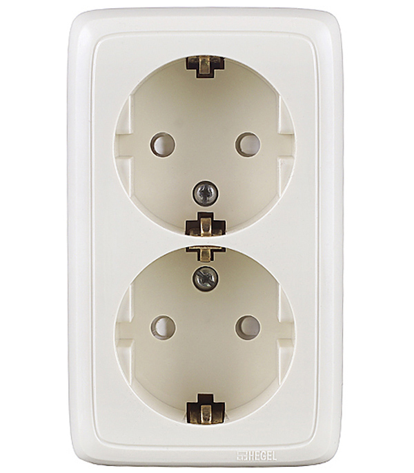 Розетка двухместная HEGEL Alfa о/у с заземлением и защитными шторками кость