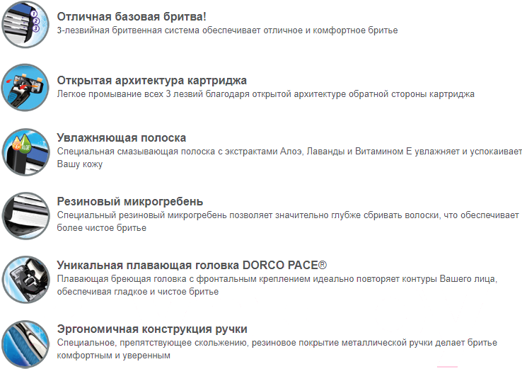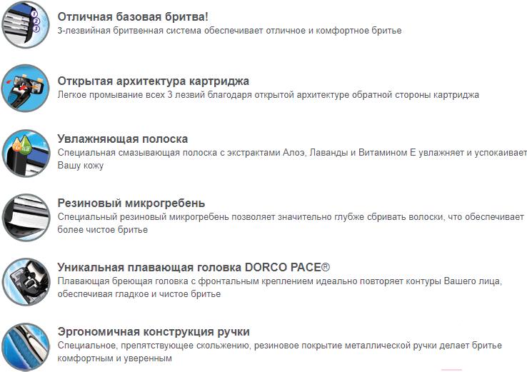Бритвенный станок Dorco Pace 3 + 2 кассеты