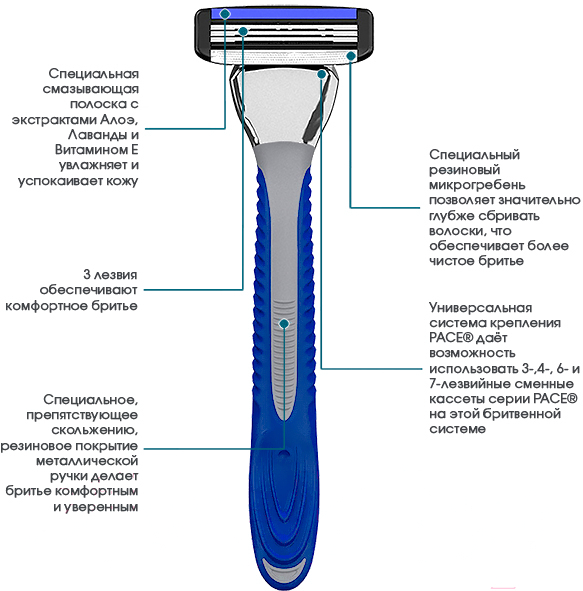 • Особенности станка/кассеты смазывающая полоска, плавающая головка