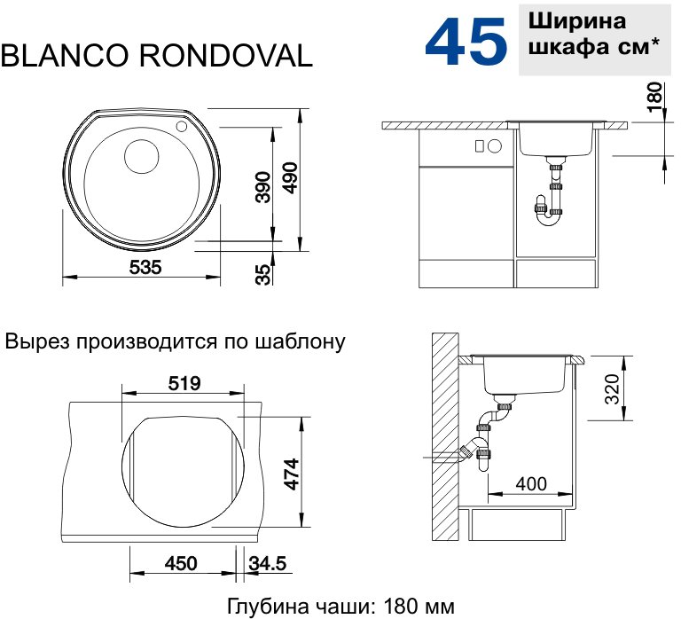 кухонная мойка blanco rondoval 53,5x49 полированная