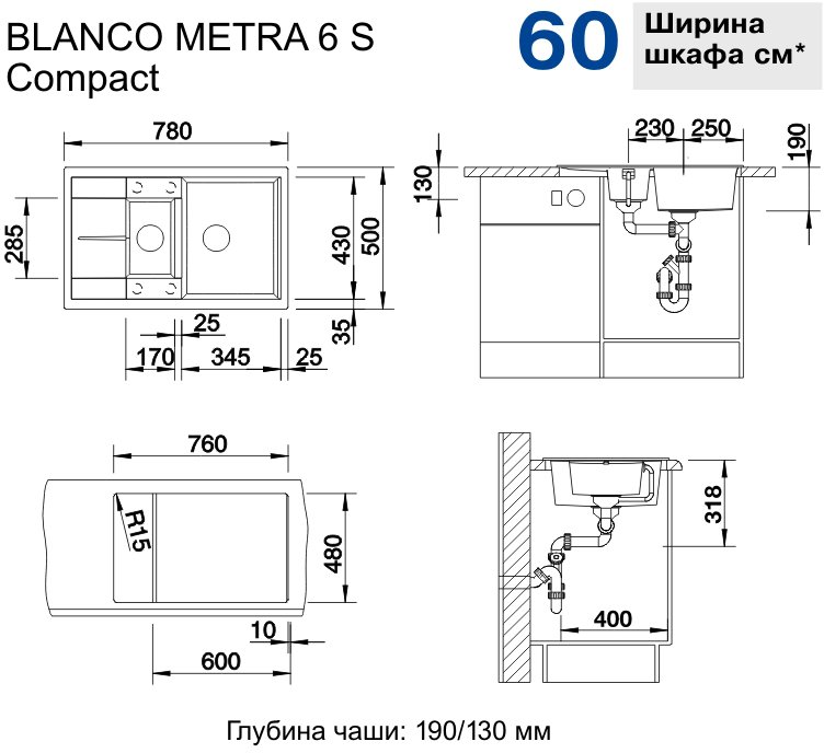кухонная мойка blanco metra 6 s compact 78x50 кофе