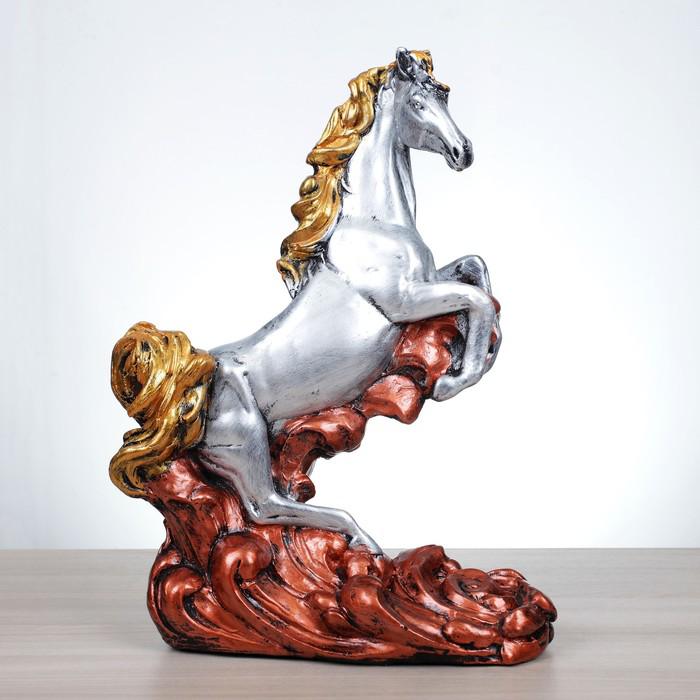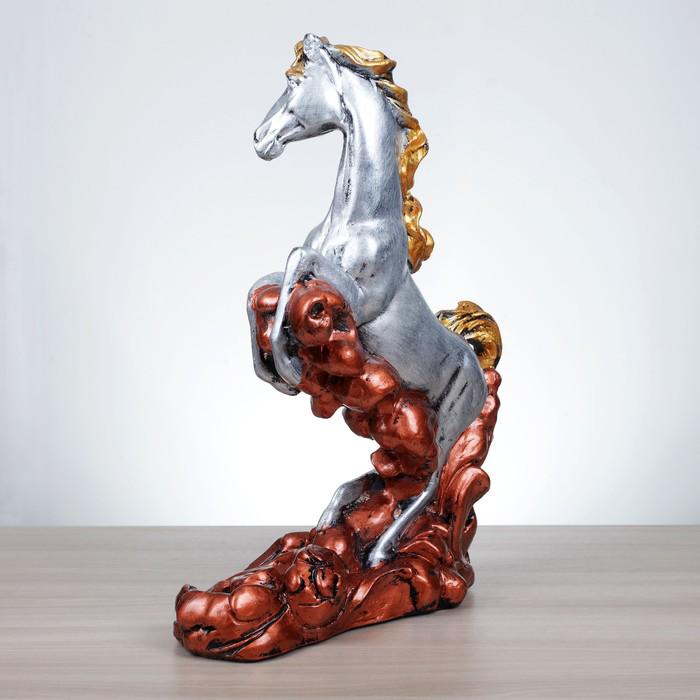 Сувенир "Конь на дыбах" огромный, серебро, микс