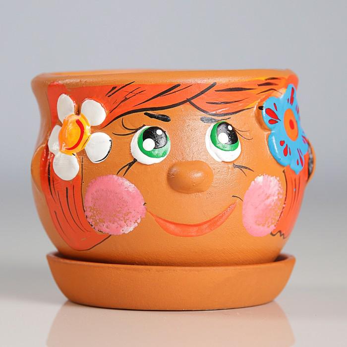 Фигурное кашпо "Личико девочка" 9×8,5 см МИКС