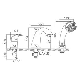 Смеситель на борт ванны Accoona A6506, однорычажный, врезной