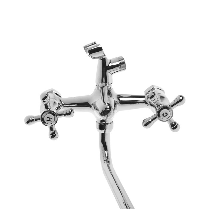 Смеситель для ванны "Центр Сантехники" 6766, двухвентильный, настенный, с душевым набором, латунь, хром