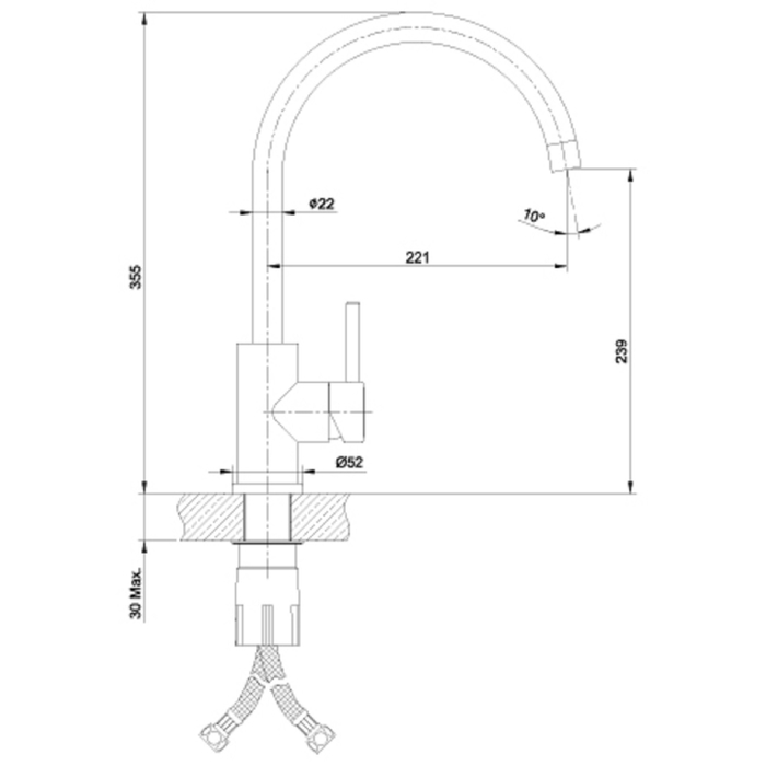 - Длина излива 355 мм