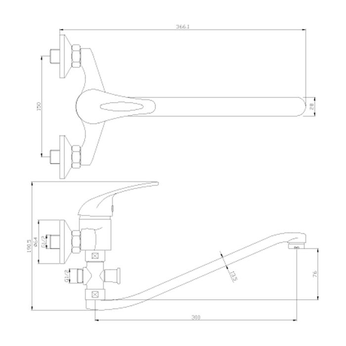- Длина излива 300 мм