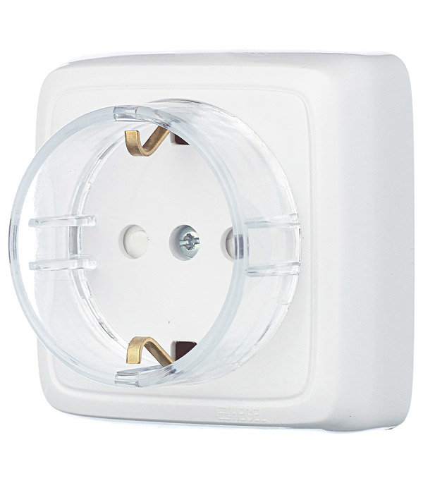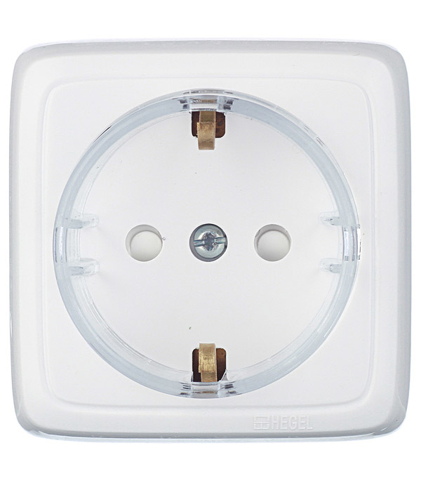 Розетка одноместная HEGEL Alfa о/у стакан с заземлением и защитными шторками белая
