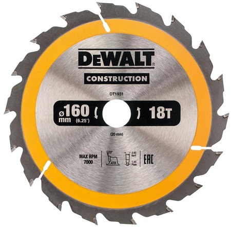 Диск пильный DeWALT 18 зубцов 160х20мм (DT1931)