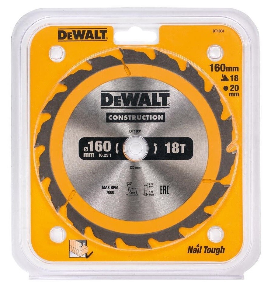 Технические характеристики DeWALT 18 зубцов 160х20мм (DT1931)