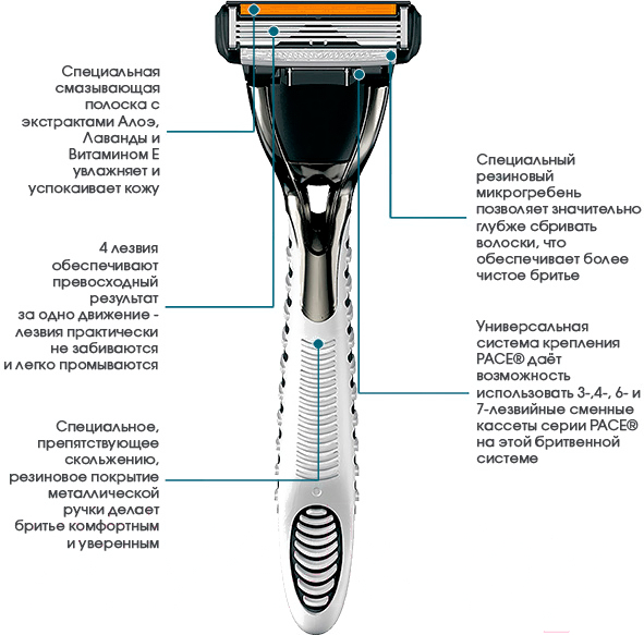 • Состав набора бритвенный станок, сменная кассета, подставка