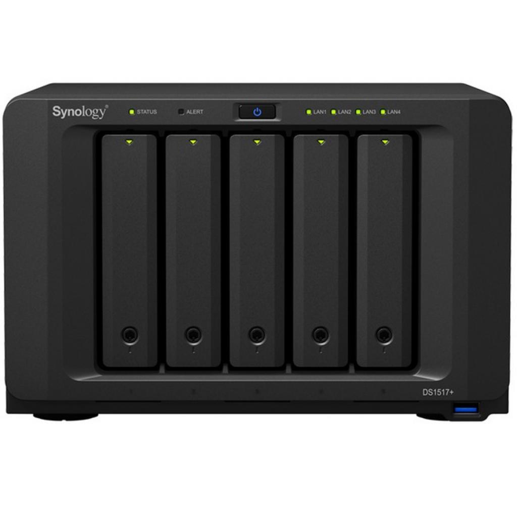 Synology DiskStation DS1517+ — это сервер NAS с 5 отсеками для дисков на базе 4-хъядерного процессора с механизмом аппаратного шифрования AES-NI. Сервер оснащен 4 портами 1GbE LAN, и в него можно установить сетевую карту 10GbE или плату адаптера M.2 под два диска SSD для повышения скорости работы в сети и производительности за счет кэширования SSD.Сервер DS1517+ оснащен 2-хканальной памятью и слотом PCIe. В него можно установить плату адаптера M.2 для двух дисков SSD, M2D17 и сетевую карту 10GbE для высокопроизводительного системного кэширования с высоким показателем IOPS и сверхбыстрой передачи данных соответственно.Файловая система Btrfs использует самые передовые технологии хранения данных для защиты данных от повреждения и снижения расходов на обслуживание с помощью оптимизированных снимков. File Station — это удобный веб-инструмент, предназначенный для простого управления перетаскиванием и вставкой файлов без сложной настройки на Mac или PC. Инструменты расширенного поиска и фильтрации обеспечивают простую организацию и удобный обмен по ссылке. File Station поддерживает SMB, FTP, AFP, NFS и WebDAV и работает в любой среде.Office — это специальный пакет для совместной работы, который сочетает в себе удобство публичных облачных сред с конфиденциальностью и безопасностью частных облачных хранилищ. Система хранения данных Synology iSCSI поддерживает большинство решений по виртуализации для повышения эффективности работы с помощью простого интерфейса управления. Интеграция VMware vSphere 6 и VAAI помогает разгрузить операции обращения к ЗУ и оптимизирует вычислительную мощность. Поддержка технологии Windows Offloaded Data Transfer (ODX) повышает эффективность передачи данных и скорость их миграции.