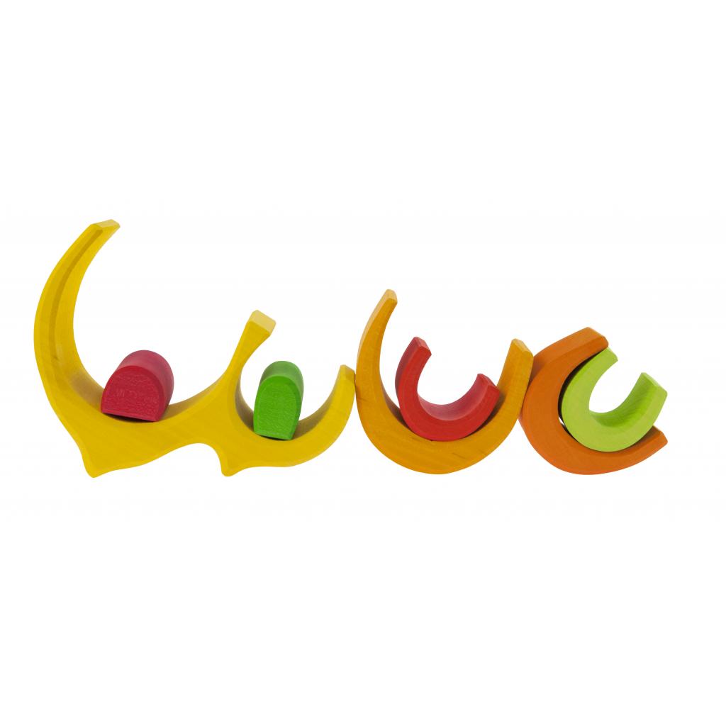 Дерев’яний конструктор у весняних кольорах німецького виробника іграшок nic здатен підняти настрій дитині і допомогти їй у ранньому розвитку. Незвичайний і екологічний набір складається із 7 деталей, які надійно запаковані у прозору поліетиленову плівку. Елементи відрізняються один від одного за розміром і кольором. Висота зібраного будиночка складає 14 см. Глибина кожної деталі – 7 см. Конструктор вироблений із натуральної деревини, яка вкрита матовими фарбами на водній основі. Матеріали нетоксичні та безпечні для здоров’я дитини. Деталі набору приємно тримати у руках, вони якісно оброблені. Конструктор підходить дітям від 1 року.