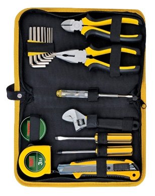 - Наличие в наборе Пассатижи, Отвертки, Нож, Ключ разводной