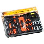 Универсальный набор инструмента состоит из 19 предметов. Отвертки: шлиц 6x100мм(sl-6); крест 2x100мм(ph-2) 2шт. Отвертка адаптер для бит 1/4" 1шт. Высокоточные отвертки (часовые):шлиц 2x50мм(sl-2); крест 0x50мм(ph-0) 2шт. Набор бит 25мм хром-ванадий 8шт. Нож выдвижной :18мм. Круглогубцы 6" Изоляционная лента.
