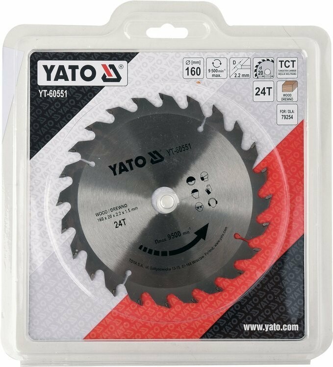 Yato YT-60551 - это пильный диск, который относится к бытовому классу оборудования. Он характеризуется диаметром 160 мм и посадочным местом 20 мм. Устанавливается на дисковые пилы, прекрасно справляется с резкой дерева.