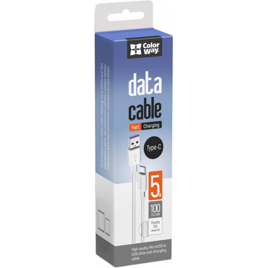 Дата кабель USB 2.0 AM to Type-C 1.0m 5A white ColorWay (CW-CBUC019-WH)