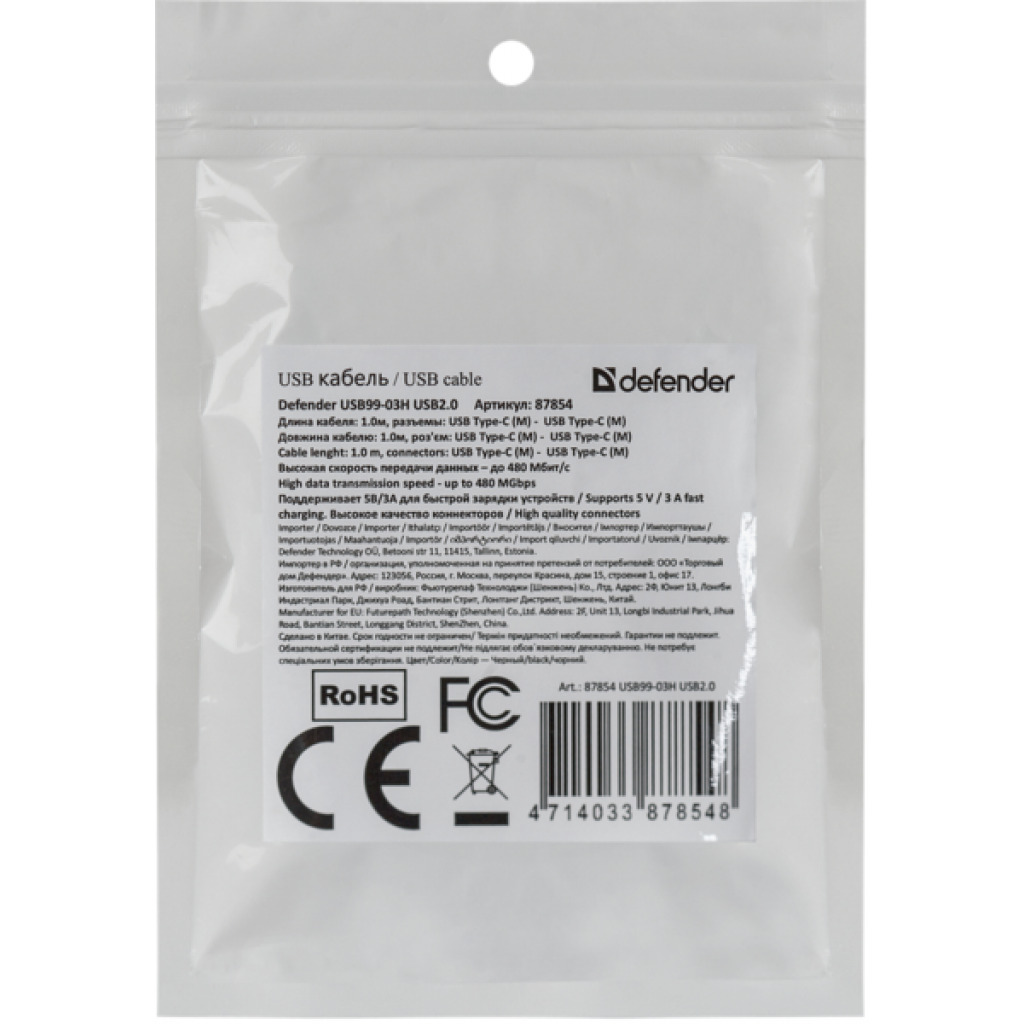 Дата кабель USB Type-C to Type-C 1.0m USB99-03H Defender (87854)