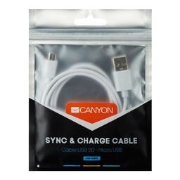 Дата кабель USB 2.0 AM to Micro 5P 1.0m White CANYON (CNE-USBM1W)