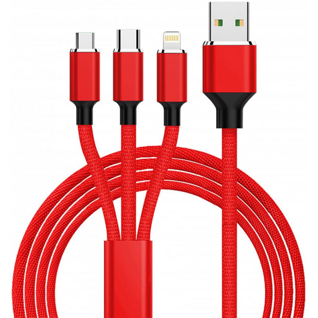Дата кабель USB 2.0 AM to Lightning + Micro 5P + Type-C 1.2m red XoKo (SC-330-RD)