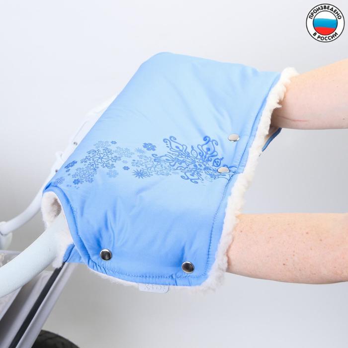 <p>Тёплый аксессуар согреет руки родителей во время зимних прогулок с малышом. Универсальная модель подходит к любой коляске и санкам: оберните её вокруг ручки и застегните кнопки. Изделие надёжно защитит от холода и ветра.</p><p>Внешнее покрытие муфты выполнено из непромокаемой ткани. Внутри есть искусственный мех, наполнитель — синтепон. Слева и справа расположены по две застёжки, ещё две кнопки находятся посередине. Муфта украшена рисунком в виде снежинок разной формы.</p><p>Рекомендована ручная стирка в прохладной воде. Сушите изделие мехом наружу, разместив его на горизонтальной поверхности. Когда материал высохнет, разомните мех руками. Гладить муфту нельзя.</p>
