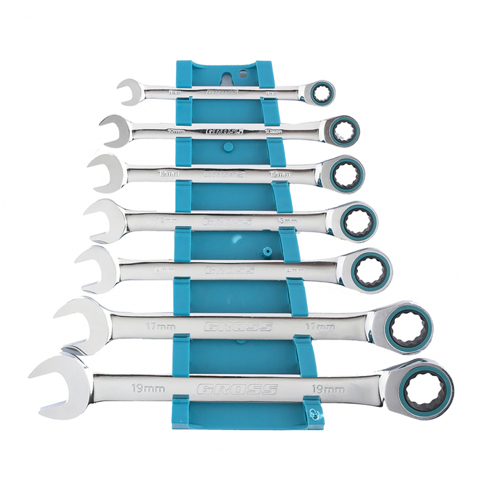 Набор ключей комбинированных GROSS, с трещоткой, 8 - 19 мм, 7шт 1875847