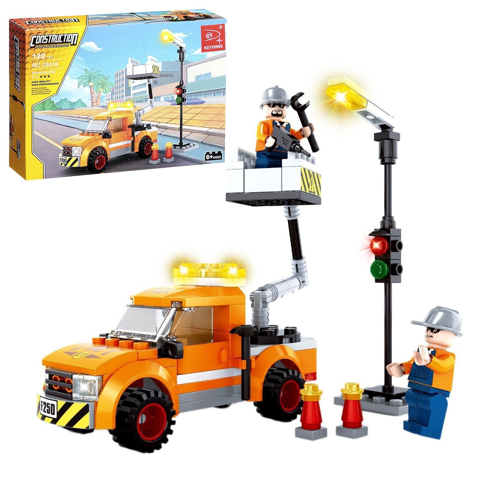 Набор содержит 120 деталей и позволяет сконструировать грузовую машину, светофор и две мини-фигурки электриков. Яркие и разнообразные элементы создадут неограниченный простор фантазии — ребёнок придумает множество увлекательных сюжетов и невероятно весело проведёт время.