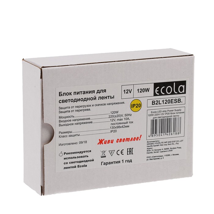 Блок питания Ecola для светодиодной ленты, 120 Вт, 220-12 В, IP20 1803112