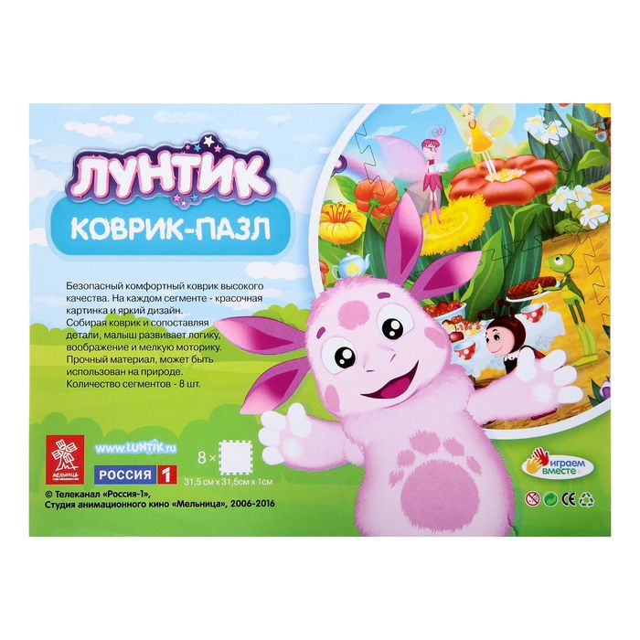 Коврик-пазл «Лунтик», 8 сегментов, каждый 31.5 х 31.5 см, в пакете 1839557