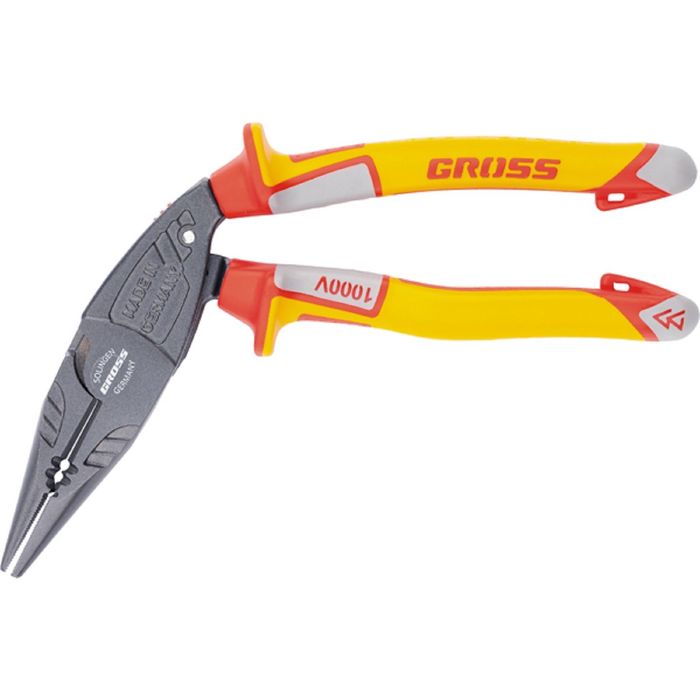Длинногубцы GROSS, с изогнутой головой, диэлектрические рукоятки до 1000 В, 200 мм 1875868