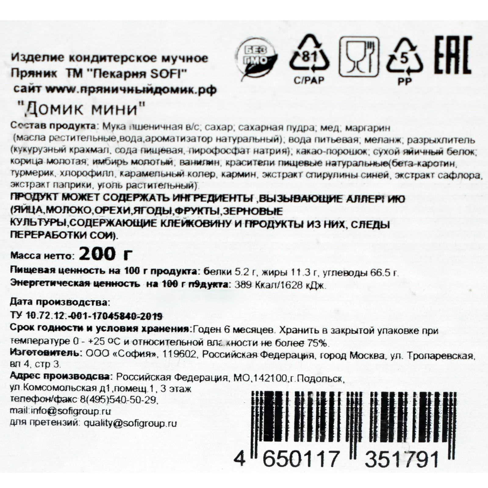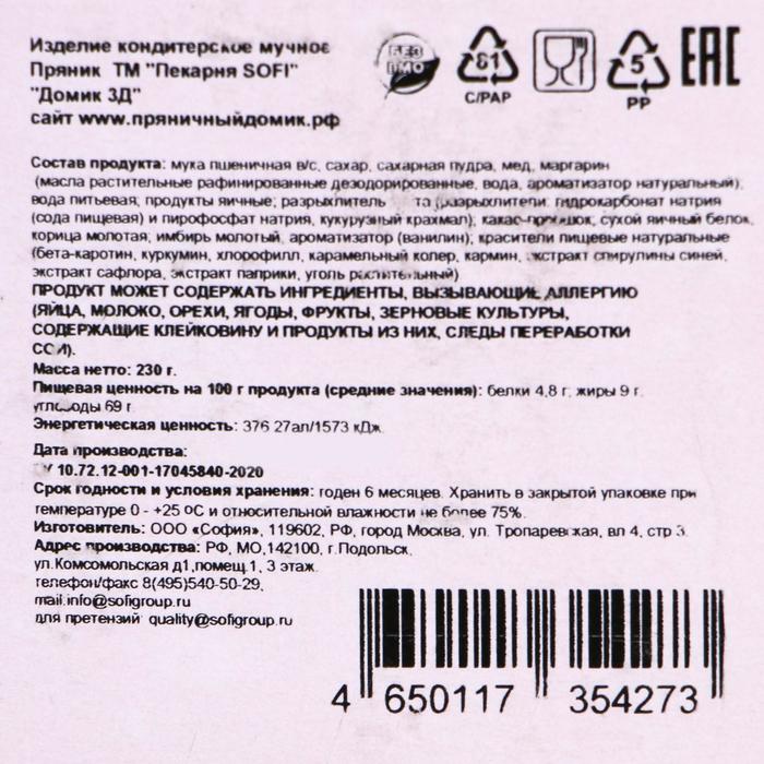 Пряник имбирно-медовый "Домик 3D" 230 г 1893081