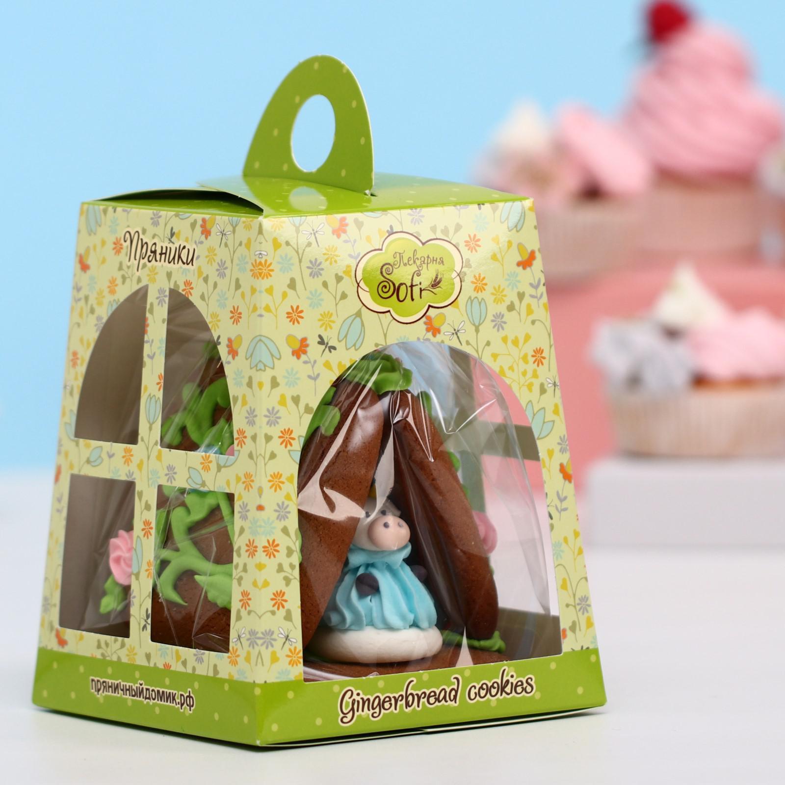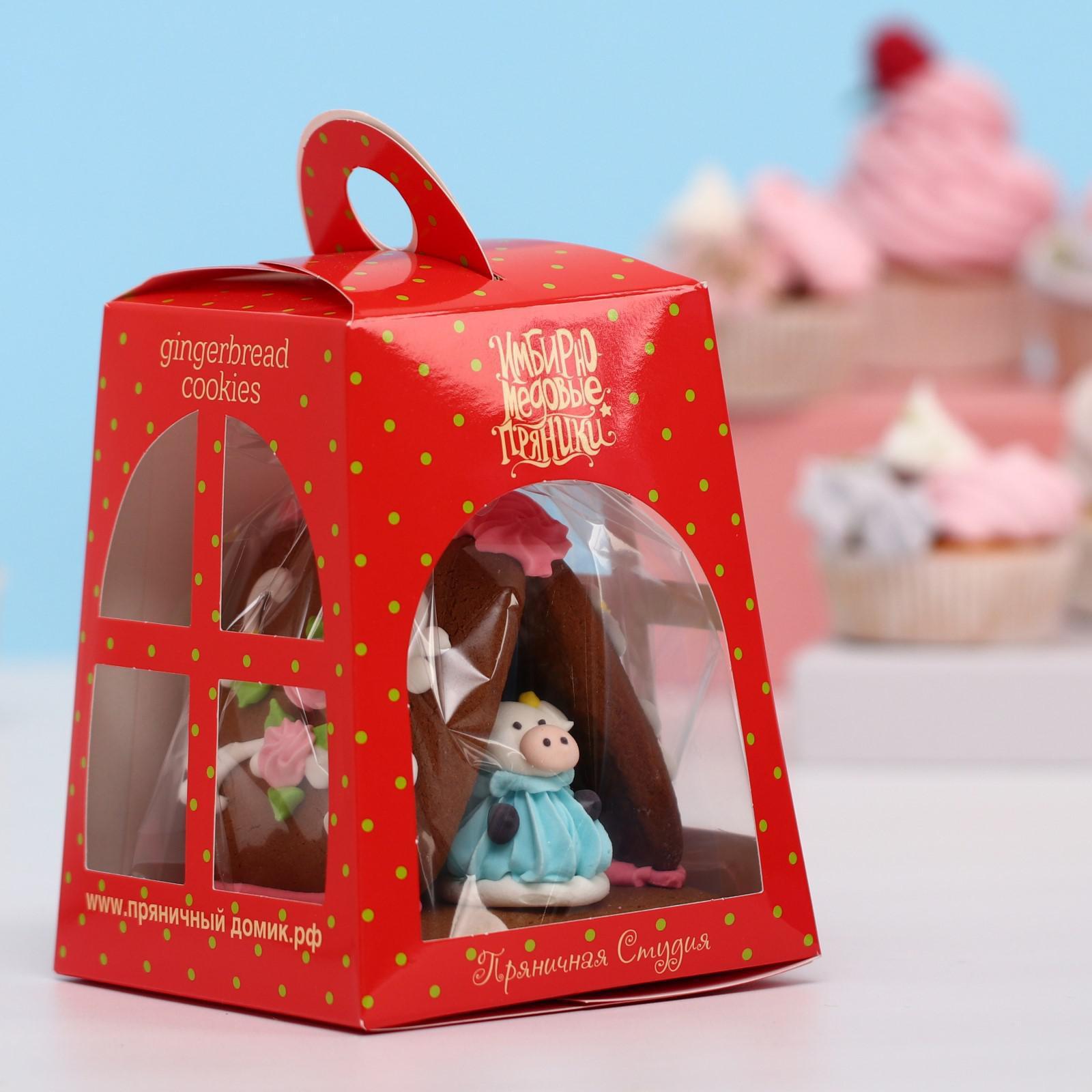 Имбирный пряник-домик создан вручную и украшен сладкой цветной глазурью. Продаётся в индивидуальной подарочной коробочке с прозрачным окошечком.