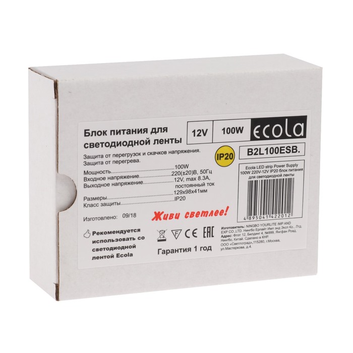 Блок питания для светодиодной ленты Ecola, 100 Вт, 220-12 В, IP20 1803109