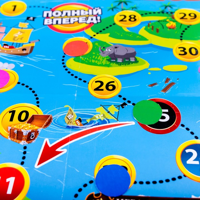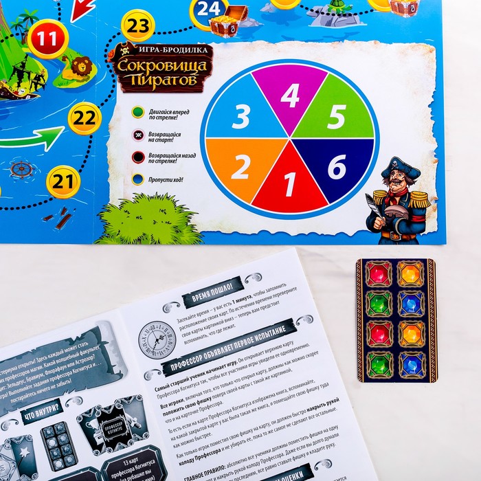 Также внутри вы найдёте бонус — игру-бродилку про пиратов. Вырежьте фишки, киньте специальный жетон на поле, передвигайтесь по клеткам и внимательно смотрите на специальные обозначения на поле. Почувствуйте себя настоящими морскими разбойниками!
